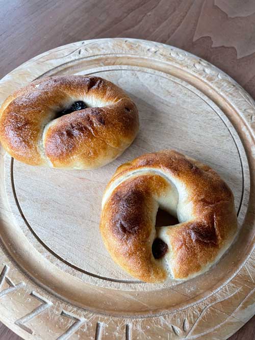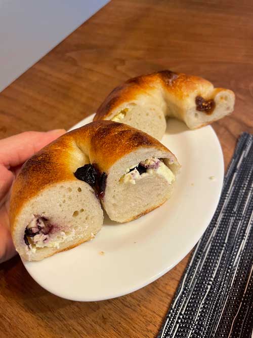 むっちりいちじくとクリームチーズのベーグルとむっちりブルーベリーとクリームチーズのベーグル いずれも450円