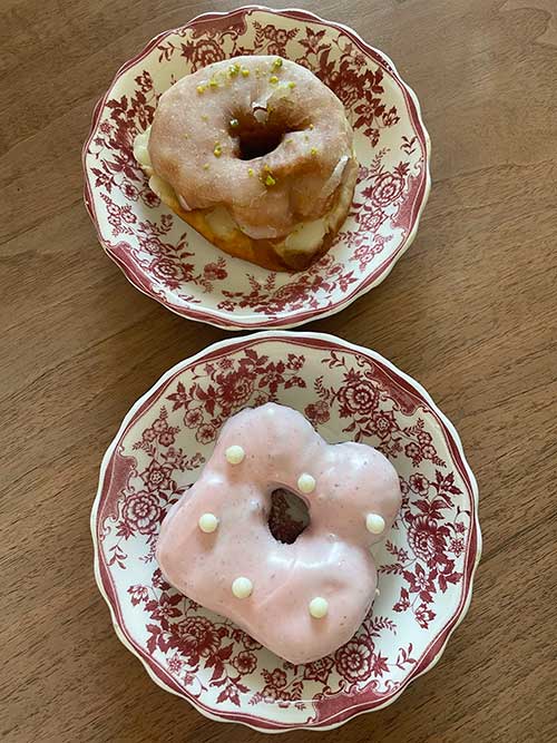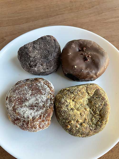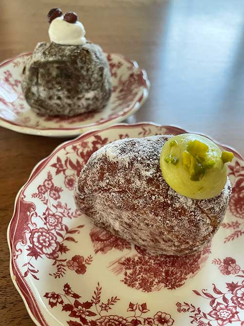 当日のおやつには、手前のピスタチオ475円と抹茶あんこクリームドーナツ486円。