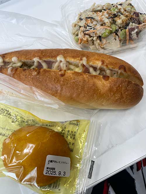 上から 根菜の白ごまサラダ320円(税別、以下同)、ベーコンポテトドッグ270円、瀬戸内レモンマドレーヌ190円