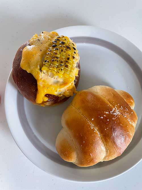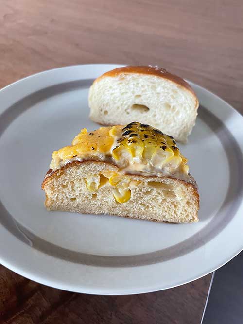 八ヶ岳とうもろこしの自家製マヨコーン380円 白トリュフの塩パン278円