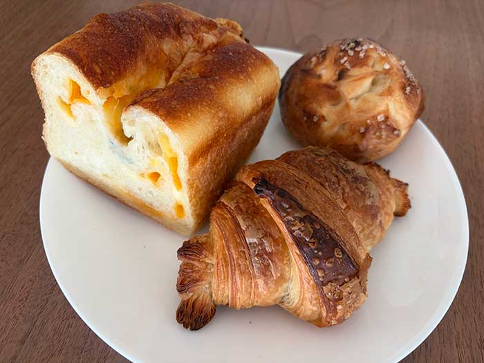 左上から時計回りに mix-c値段不明 岩塩バター280円 クロワッサン290円