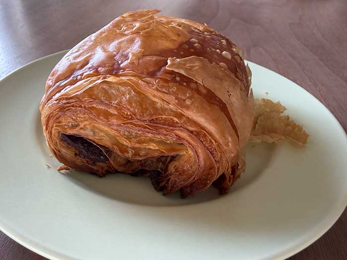 クロワッサン生地のパリパリさ加減といったら、口の中がキレそうなくらいで素晴らしい。ちょっとリベイクしたのでとろっとしたチョコレートも美味しく、至福のひとときでした。