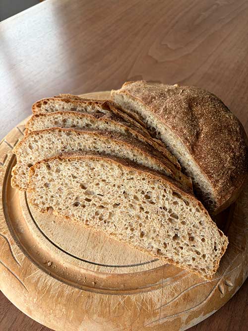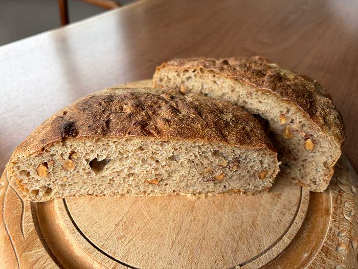 勢いがあり、素焼きのアーモンドを混ぜ込んだパンも焼きました。